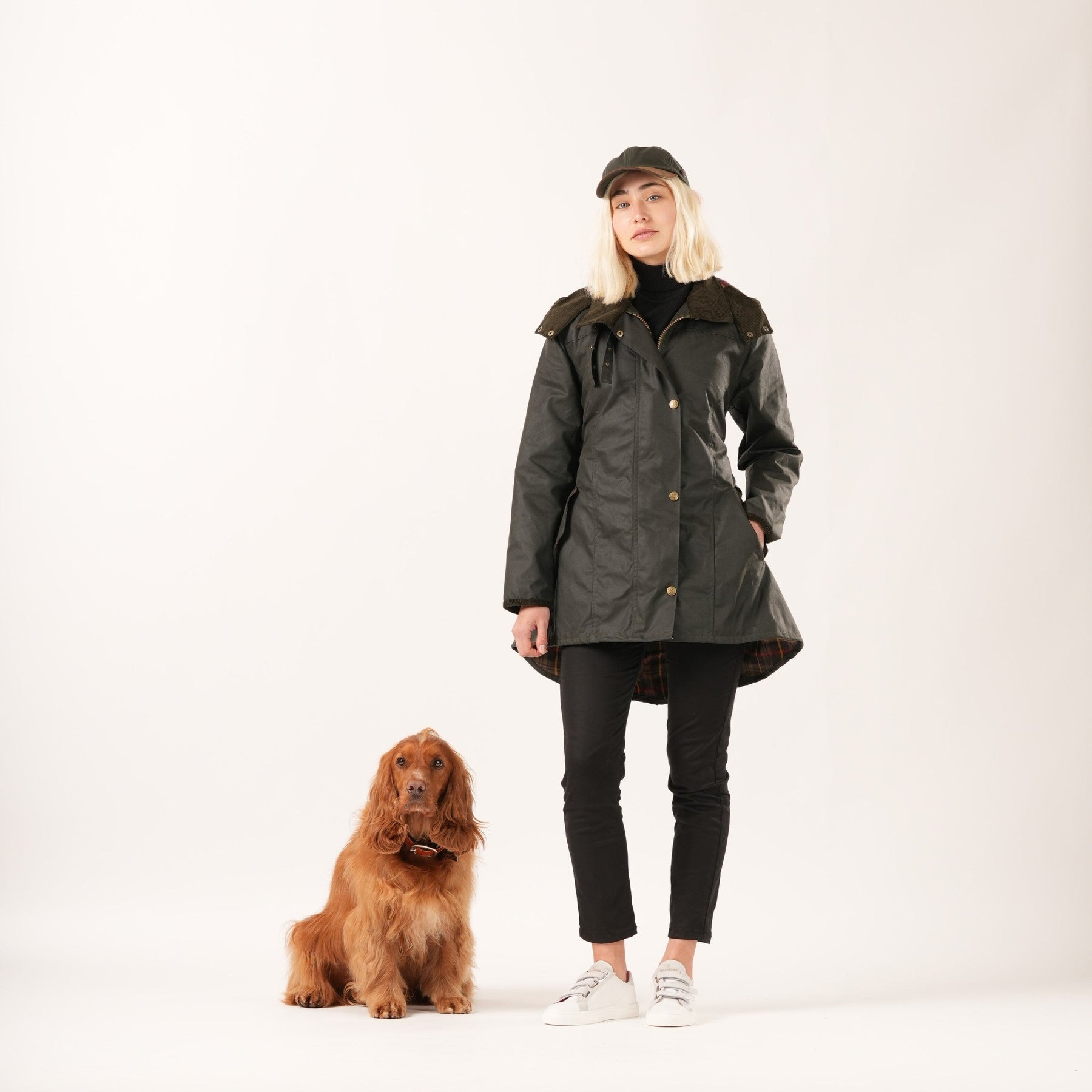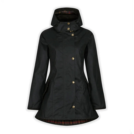 Welligogs British racing green Louise Wax coats are highly sought-after for their reliability and exceptional quality. Made in England, these coats feature a fitted waist, a fish tail style at the back, and adjustable straps for a stylish touch.