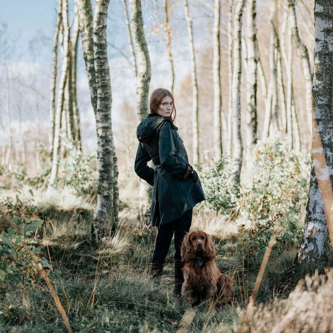 The Huntsman green Louise coat is a timeless piece with a touch of flair. Proudly crafted in the UK.