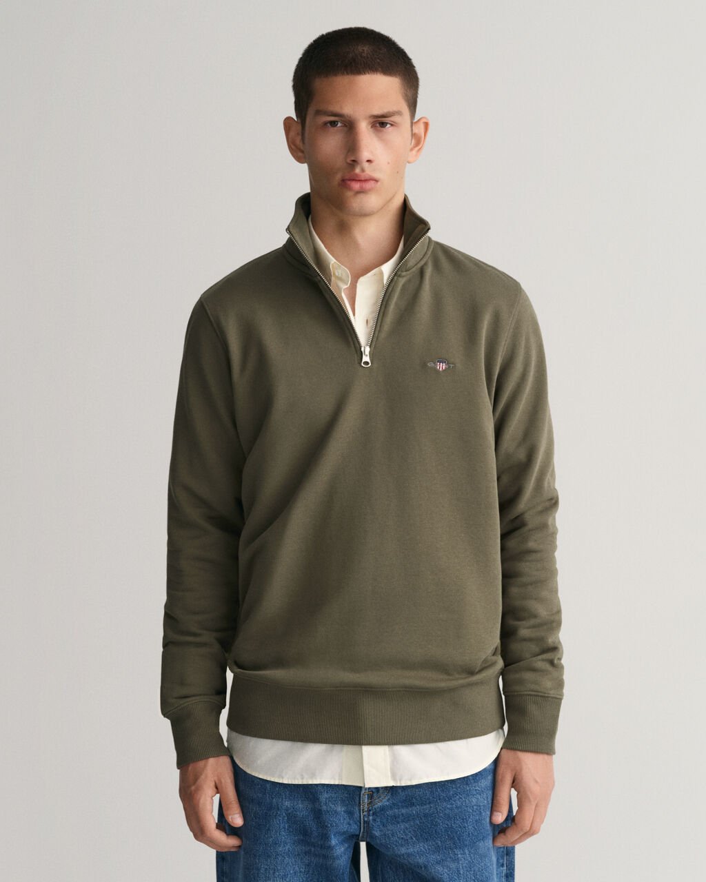 Featuring a small-scale shield graphic embroidered at the chest, this half-zip sweatshirt is detailed with soft ribbing at the hem and cuffs. Made from a rich cotton-polyester blend in a regular fit, this sweatshirt can be worn over tees and layered under jackets during the winter months.