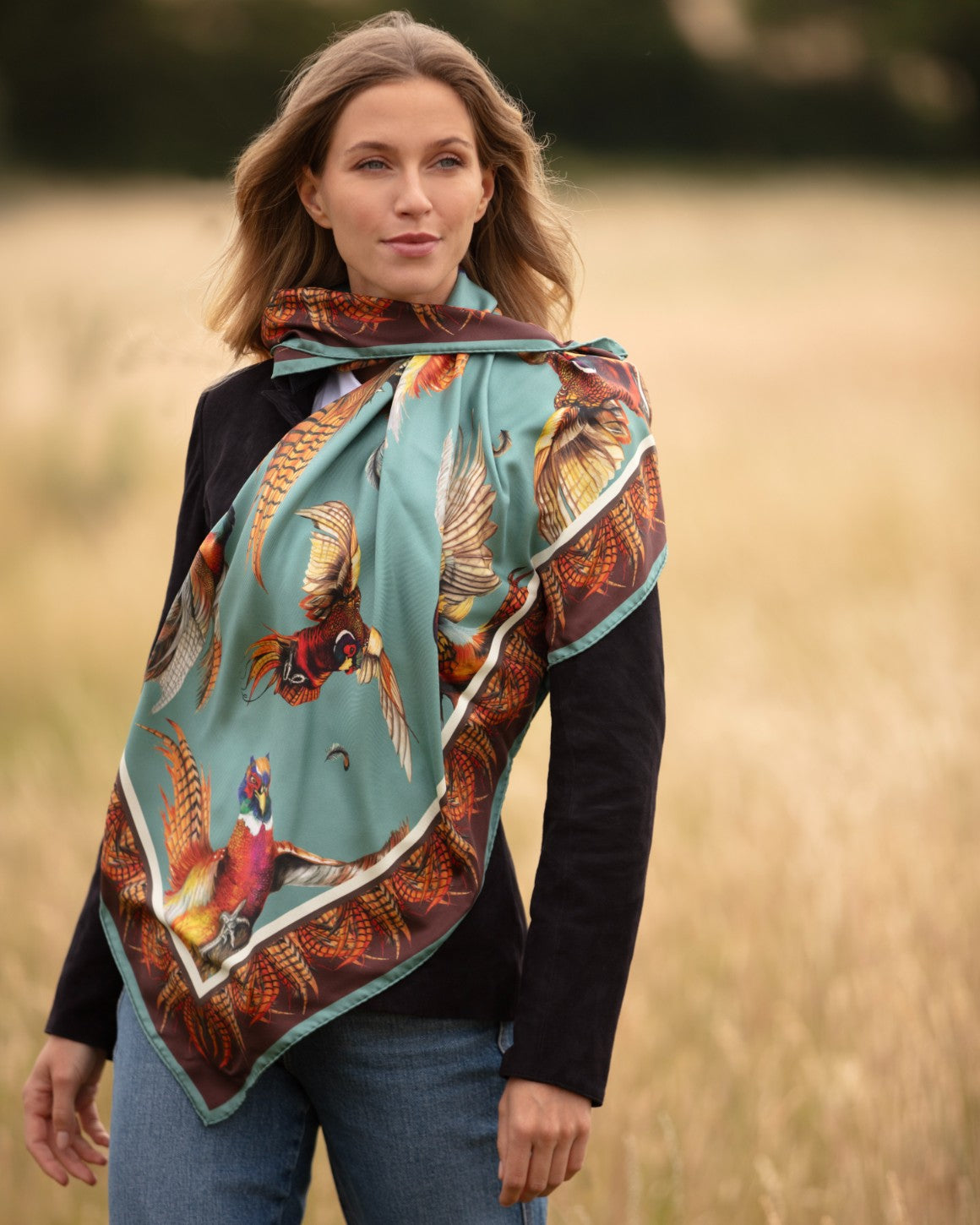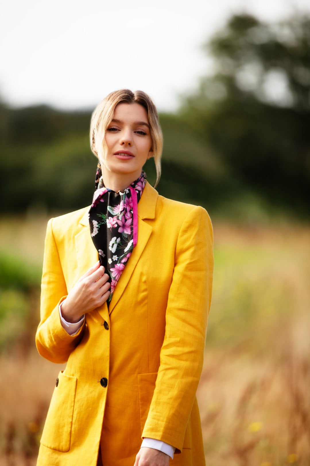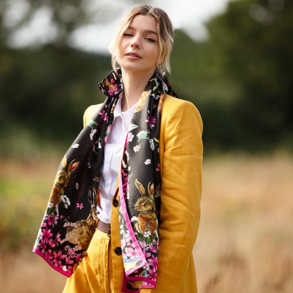 Clare Haggas, Classic Oopsie Daisy Silk Scarf Ebony & Fuchsia