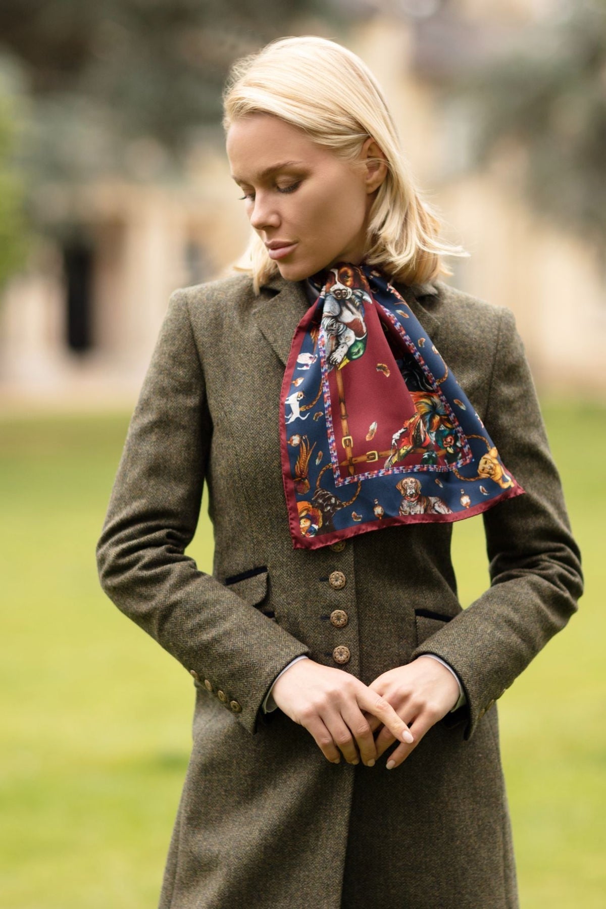 Clare Haggas, Medium Square Its A Dogs Life Silk Scarf Navy & Fawn
