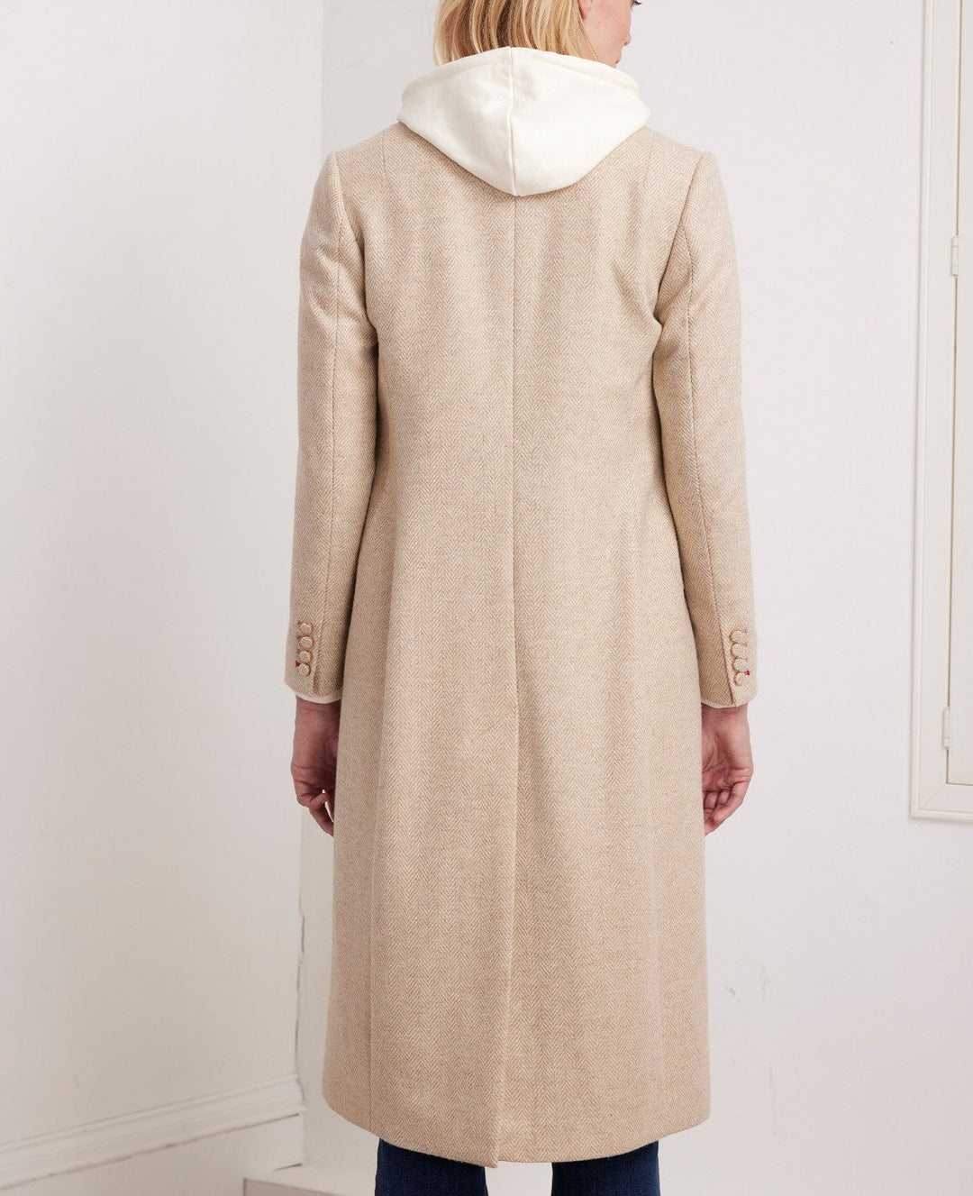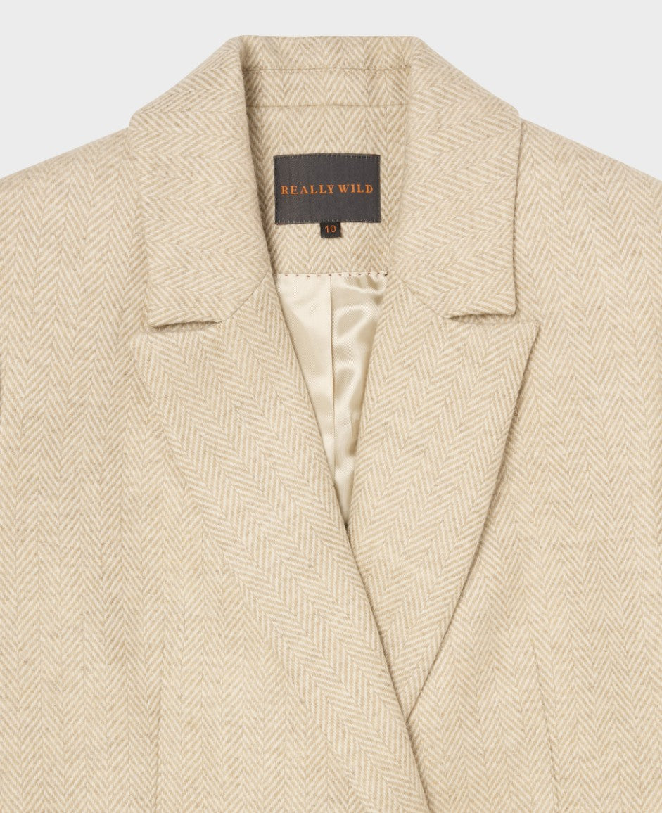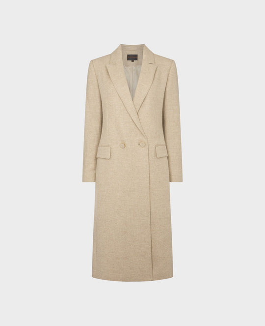 Double Breasted Wool Coat Wheat Herringbone