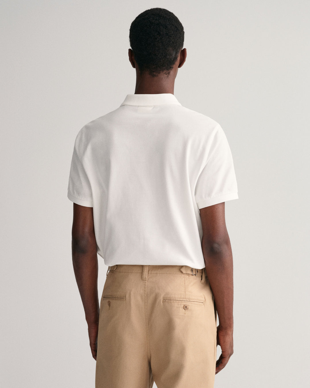 The GANT polo shirt keeps it easy, simple, and classic. With a regular fit and a traditional flat knit collar, details include a two-button placket, small side slits, and signature GANT logo embroidered at the chest.